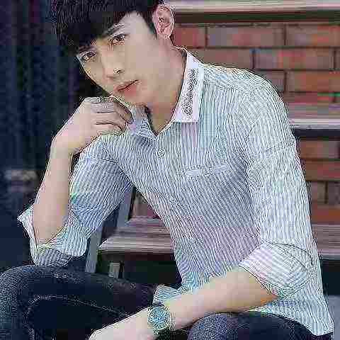清7.8分货➕1条纹衬衫男长袖商务潮流秋季韩版修身帅气青年休闲白衬衣男士寸...