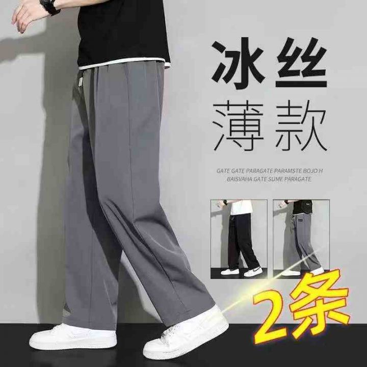 新款夏季冰丝裤子男士港风运动空调感透气速干直筒休闲...