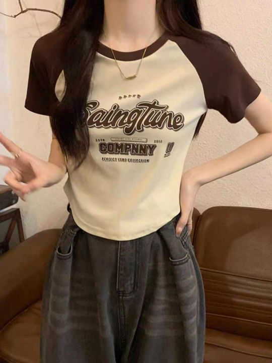 夏季新款美式撞色插肩复古印花针织短袖T桖,独立包装,均码面料柔软舒适弹力大,1930件,全清5.9元超低价秒杀!分货加一!