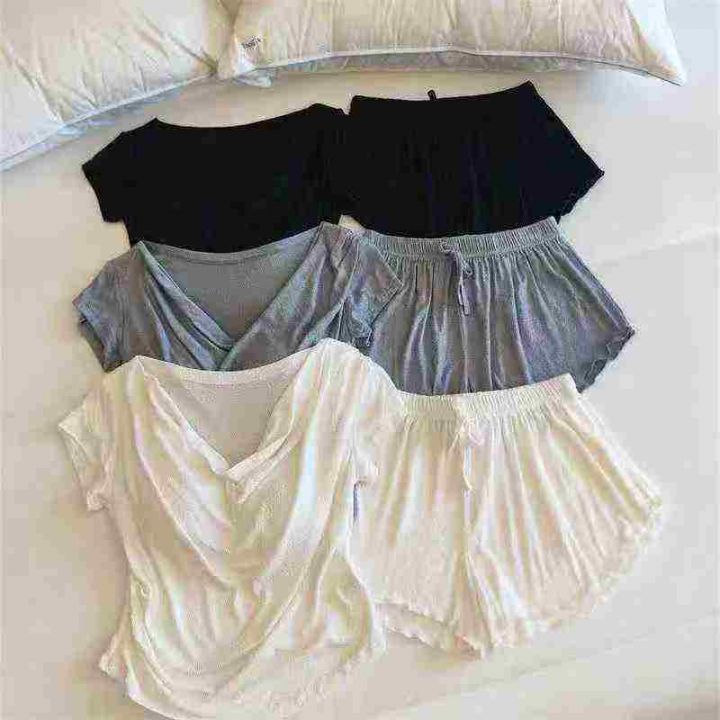 全清价7.8元4000套,睡衣女短袖短裤带胸垫吸湿排汗荡领小胸聚拢女人性感风...