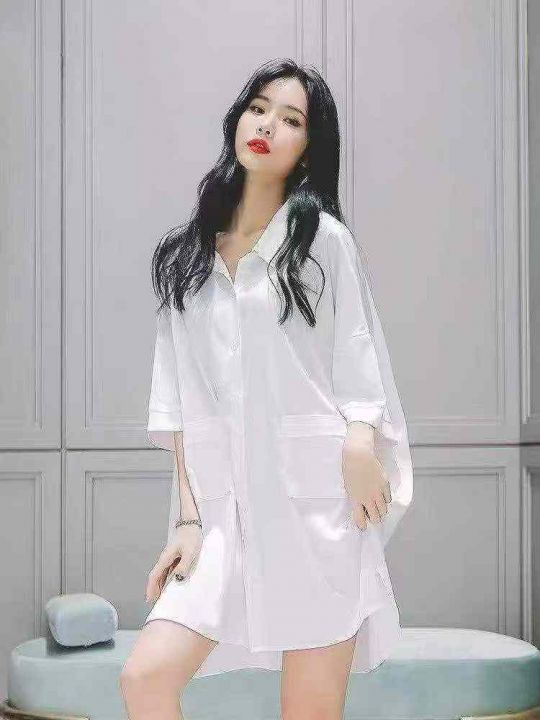 [月亮]:夏季薄款纯欲男友风家居裙白衬衫