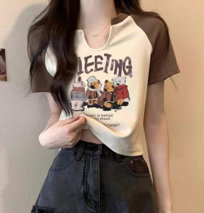 夏季新款美式撞色插肩复古印花针织短袖T桖,独立包装,均码面料柔软舒适弹力大,1090件,全清5.9元超低价秒杀!分货加一!