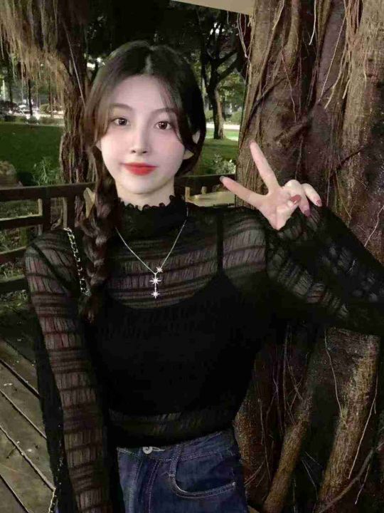 靓妹气质半高领网纱打底衫350件5.9,