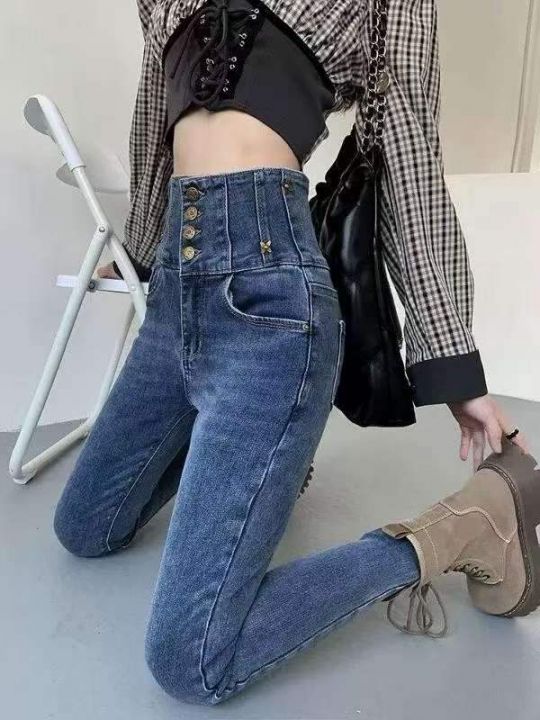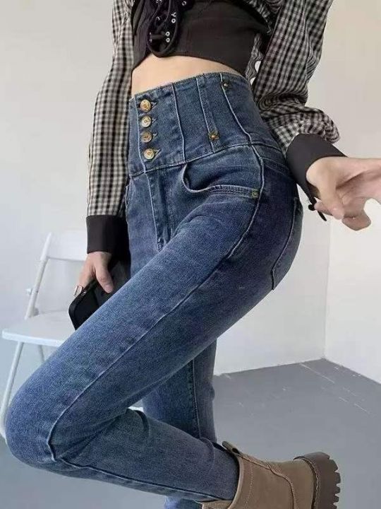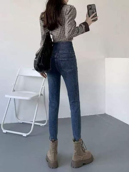 超高腰显瘦弹力紧身小脚牛仔裤,整款2色,独立包装,...