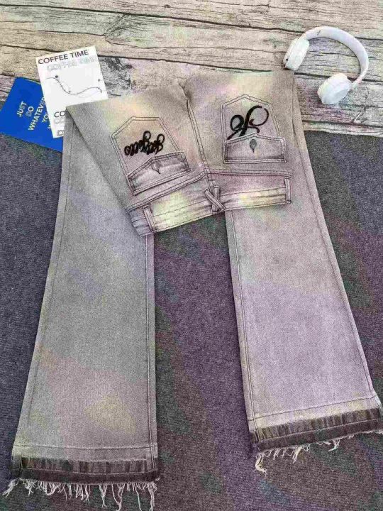 3️⃣美式重工刺绣低腰微喇叭毛边拖地牛仔裤237条,码数M-XL,正品独立包装