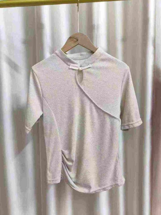 3️⃣南油货新中式国风靓妹立领盘扣褶皱短袖t恤632件...