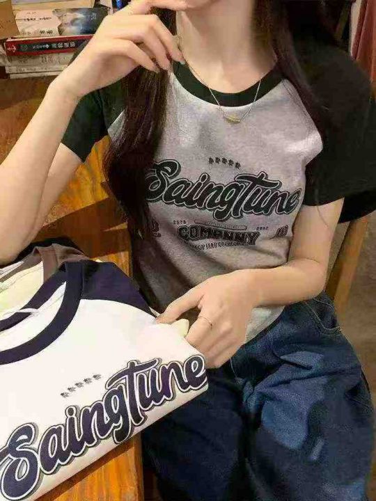 夏季新款美式撞色插肩复古印花针织短袖T桖,独立包装,均码面料柔软舒适弹力大,1930件,全清5.9元超低价秒杀!分货加一!