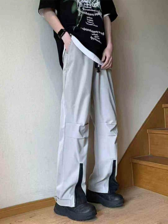 美式潮牌拉链撞色拼接冲锋裤防风男士长裤.单款两个色...