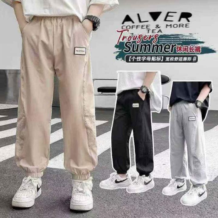 当季热卖中大童冰丝薄款男童透气束脚运动裤,独立包装,整款三色,码数120-170,质量做工,可入实体店,数量753条,分货加1