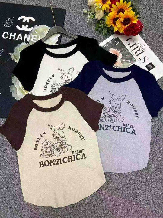 夏季新款美式撞色插肩复古卡通水印花针织短袖T桖,独立包装,均码面料柔软舒适弹力大,140件,全清5.9元超低价秒杀!