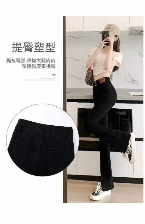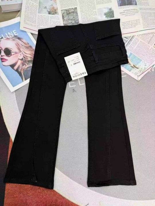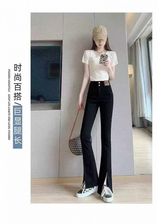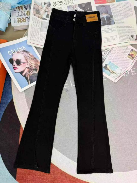开叉高腰显瘦黑色马蹄微喇叭牛仔裤,单款单色,独立包装,数量1000条,25-31码,福利价9.9秒杀,分货加1(9909#610)