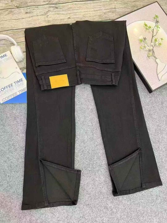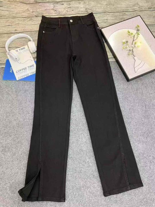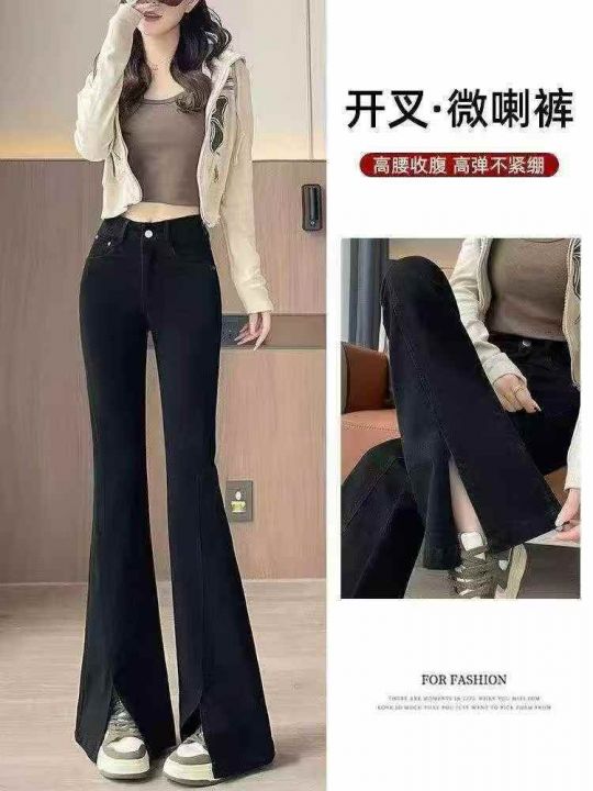 弹力黑色开叉微喇牛仔裤女新款高腰显瘦前开衩喇叭马蹄拖地裤50条全清11.8元 ,码数S到XXL ,正品独立包装[庆祝][庆祝]