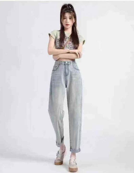 ☕️日系复古怀旧夏季哈伦牛仔裤女百搭高腰直筒宽松显...