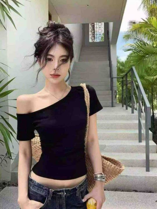 纯欲风斜肩修身露锁骨辣妹上衣,[爱心]175件左右,款号#1039,码数S-XL,穿70-120斤,万佳档口货,原包装️无瑕疵,[666]实体店品质,分货加一