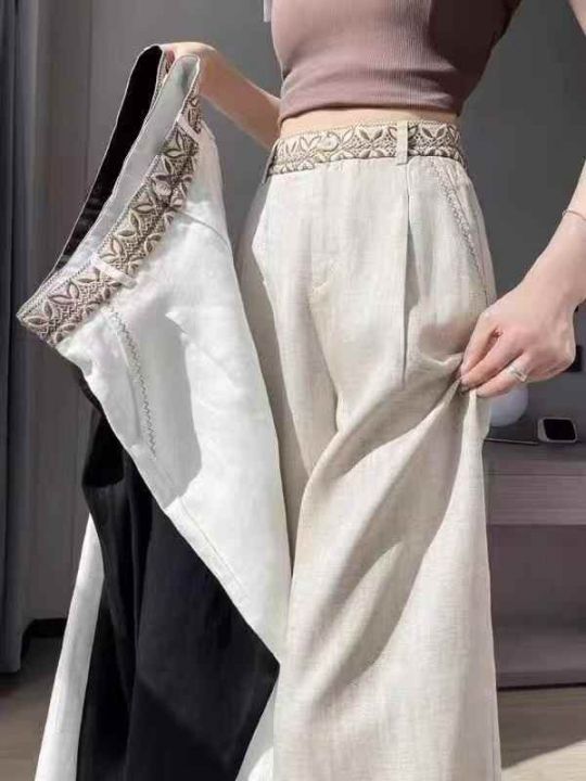 ☕️夏季冰丝阔腿裤名媛慵懒风抽绳高腰纹理春季新款宽松垂感直筒休闲裤1632...