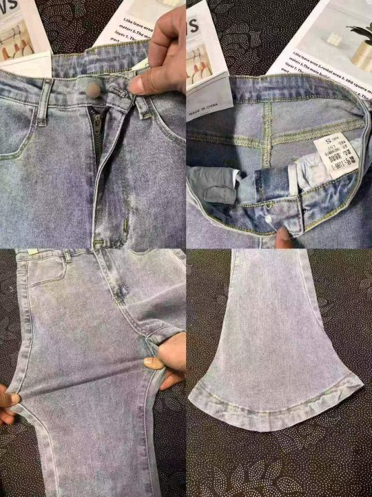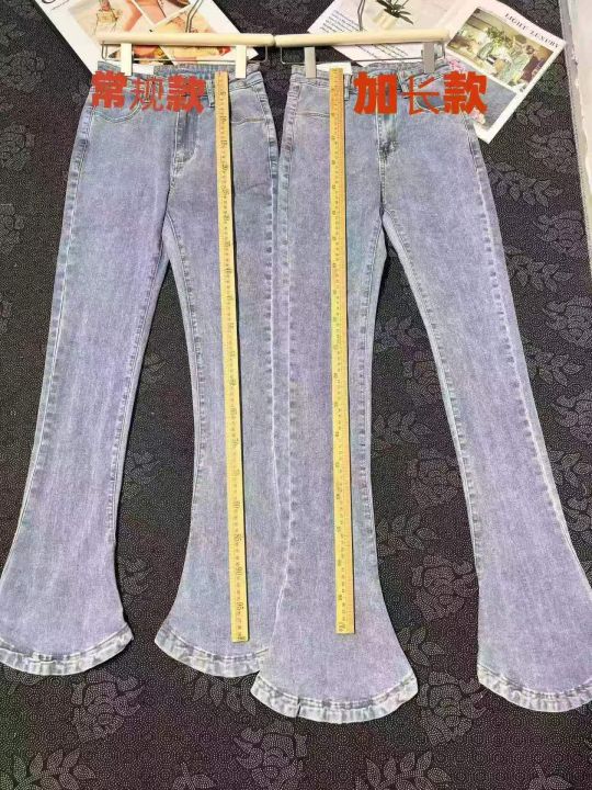 女士喇叭马蹄牛仔裤 1481件大整款(常规版跟加长版),全清12.8,分货13.8元正品独立包装,货品干净,码数S到XL,高个子加长版弹力高腰马蹄牛仔裤女修身显瘦喇叭拖地裤。