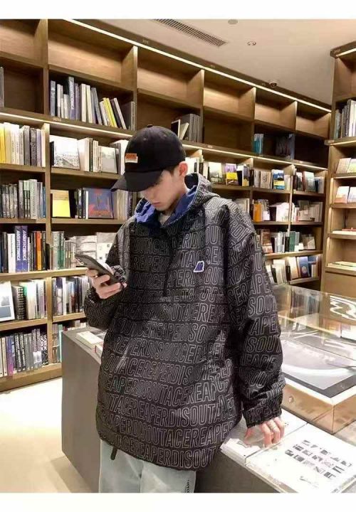 机能风字母半拉链连帽夹克潮牌上衣,[爱心]45件左右,码数M-L,穿50-130斤,万佳档口货,原包装️无瑕疵,[666]实体店品质