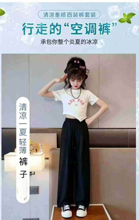 全清价6.8夏季热卖中大女童薄款冰丝直筒阔腿裤,独立...