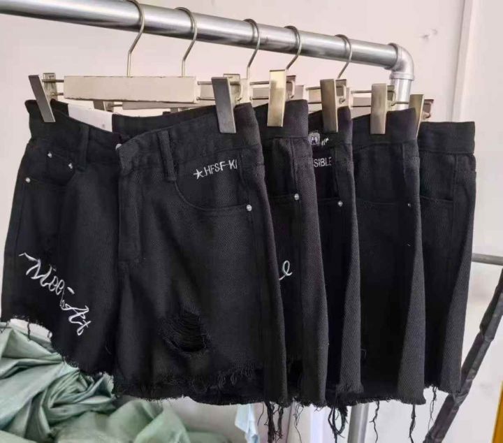 970件夏季新款高腰破洞刺绣牛仔短裤,主要是三个带英文字母款式,少量无刺绣,码数S-2XL,独立包装
