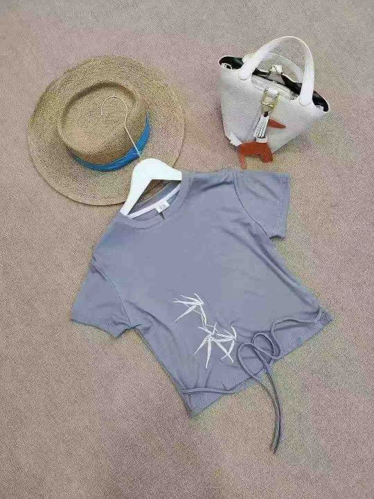 [月亮]:新中式刺绣绑带设计辣妹T恤