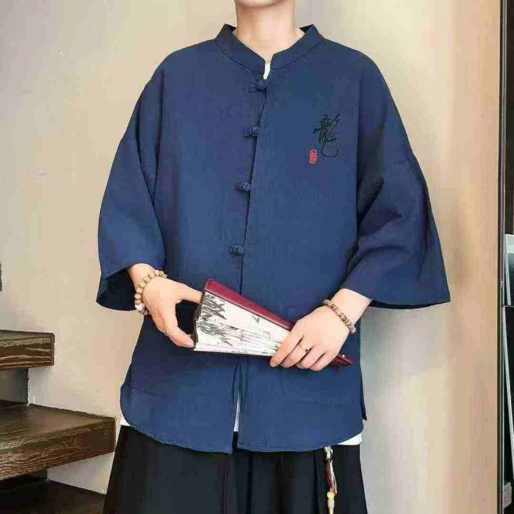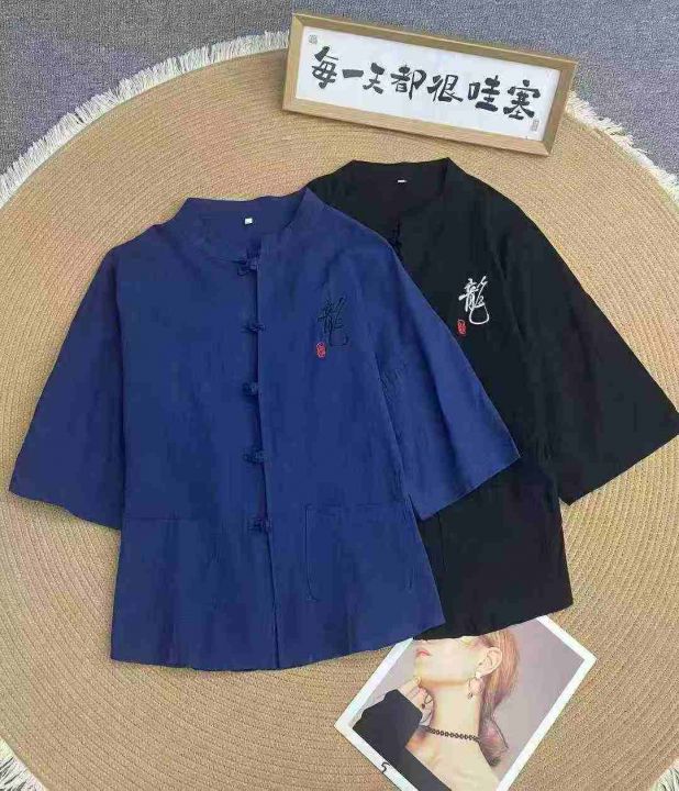 新中式唐装棉麻短袖衬衫59件6.5,盘扣七分袖,古风刺...