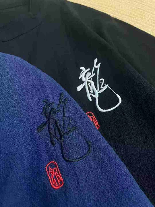盘扣七分袖,古风刺绣图案,