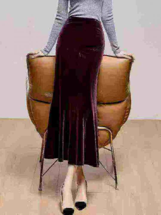 1238件半身裙金丝绒鱼尾裙修身显瘦包臀秋冬装光泽垂感松紧腰高腰长裙,单款两色 黑色为主,两种长度:过膝中长款 长款到脚面,长短款各半 加绒不加绒各半,码数S-3XL码 独立包装。