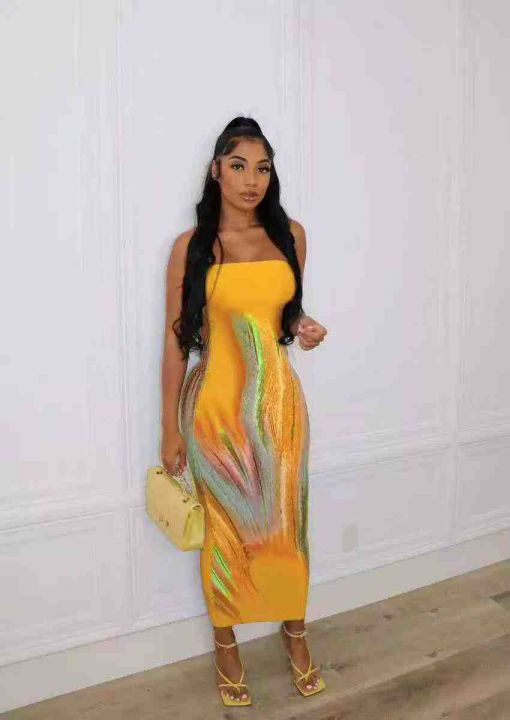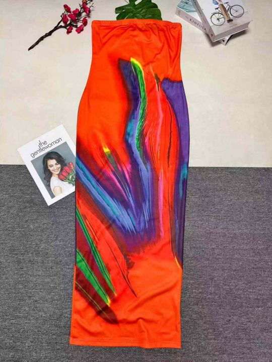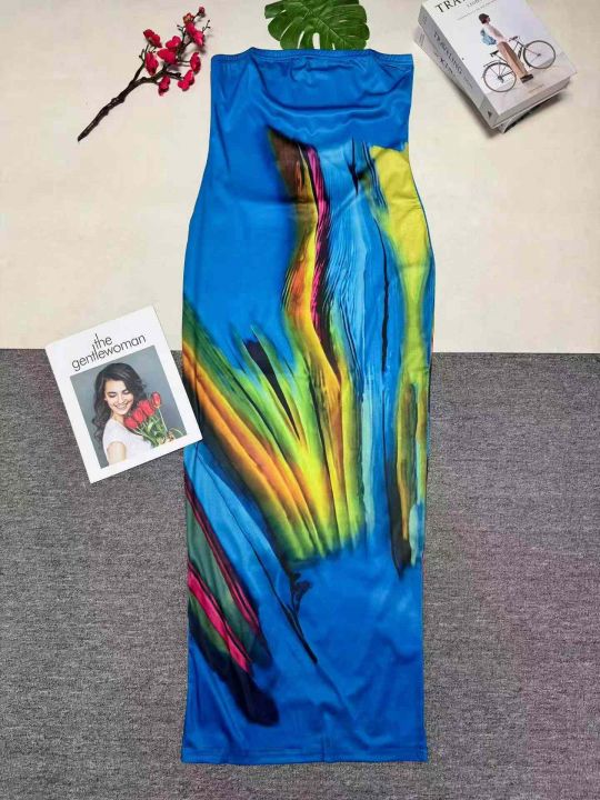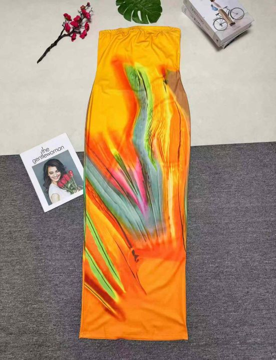 欧美跨境时尚女装印花露肩裹胸礼服长连衣裙,整款三色,数量:698件,码数:S-2xL,品质好,拉链式独立包装。