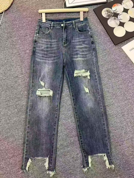 ☕️弹力牛仔裤女薄款破洞乞丐九分裤直筒裤高腰显瘦微喇裤24条全清9.8元,码数S到4XL,正品独立包装,单款2色[庆祝][庆祝][庆祝]