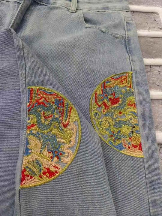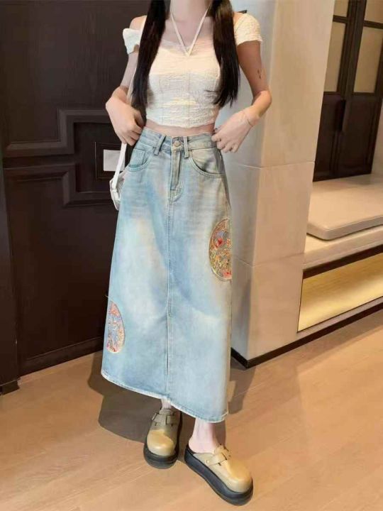 新款蓝色国风女大码中长款开叉刺绣牛仔裙 数量80件左右 尺码3XL 前开叉 侧两边重工刺绣 独立包装带吊牌 货品干净整洁