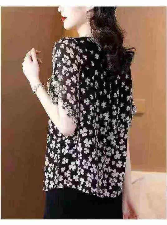 2026夏季新款时尚印花刺绣花边领短袖上衣宽松版 数量:234条 码数:3XL-6xL码 独立包装(货号401#5)