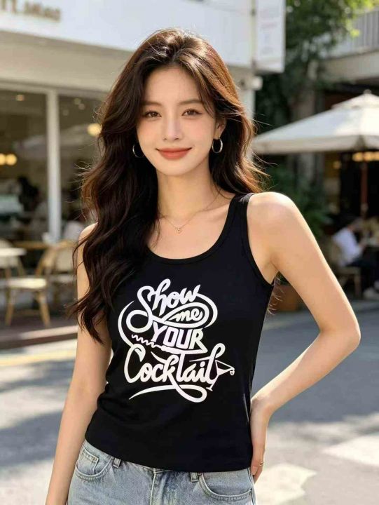 纯棉高弹力女士印花背心 157件,全清5.8元,正品独立包装,每件带有吊牌,码数S到L,美式复古街头辣妹背心女夏季新款字母印花修身高弹无袖上衣潮