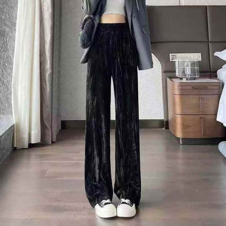 天猫在售款368件左右高品质秋冬款宽松垂坠感高腰金丝绒阔腿裤,码数M-3XL,单款四色,独立包装带吊牌