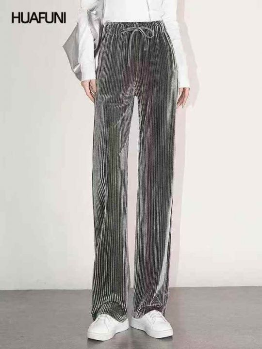 冬季新款高品质女装网红复古直筒阔腿松紧腰加绒加厚休闲裤,独立包装带吊牌...