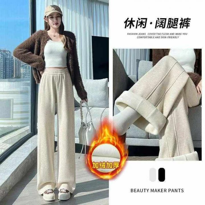冬季新款高品质女装网红复古直筒阔腿松紧腰加绒加厚休闲裤,独立包装带吊牌...