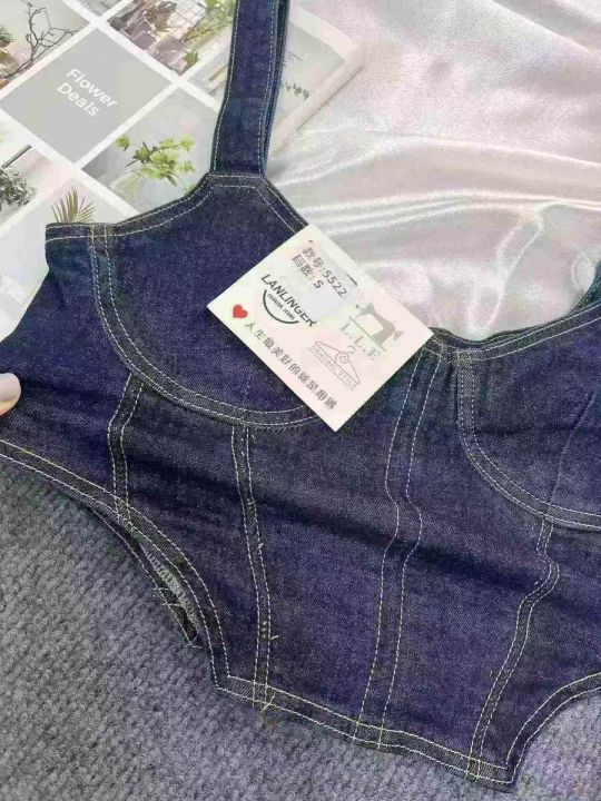 美式复古牛仔吊带抹胸个性辣妹修身显瘦上衣490件全清8.8元 分货9.8元,码数SML ,有弹力,正品独立包装[庆祝][庆祝][庆祝]百搭热销牛仔吊带抹胸款