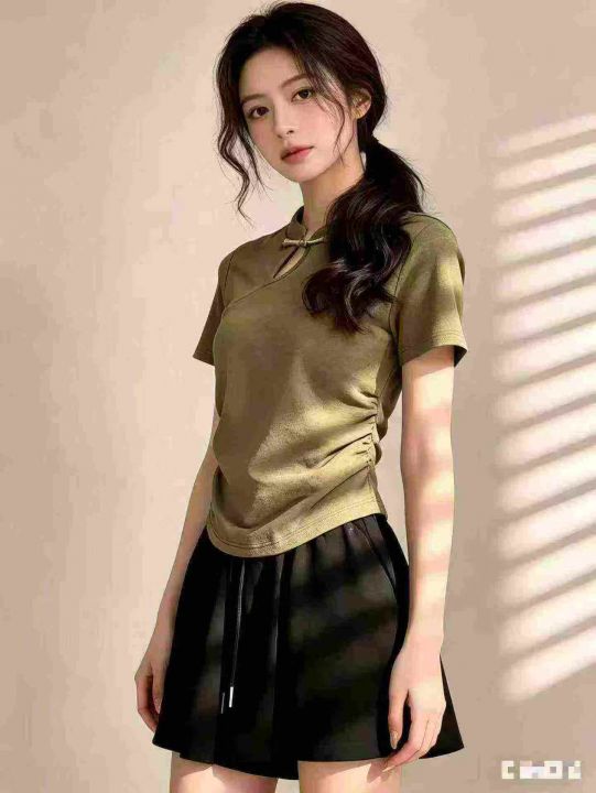 3️⃣南油货新中式国风靓妹立领盘扣褶皱短袖t恤632件...