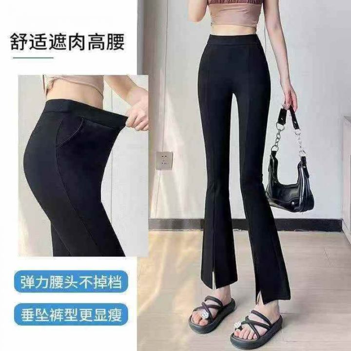 4820条新款黑色微喇裤女春秋夏季小个子高腰显瘦弹力九分开叉喇叭裤 ,单款单色,S一6XL,有码数清单,独立包装,内里包边料子有弹力,全清8.8分货加1