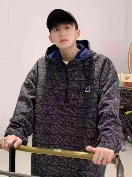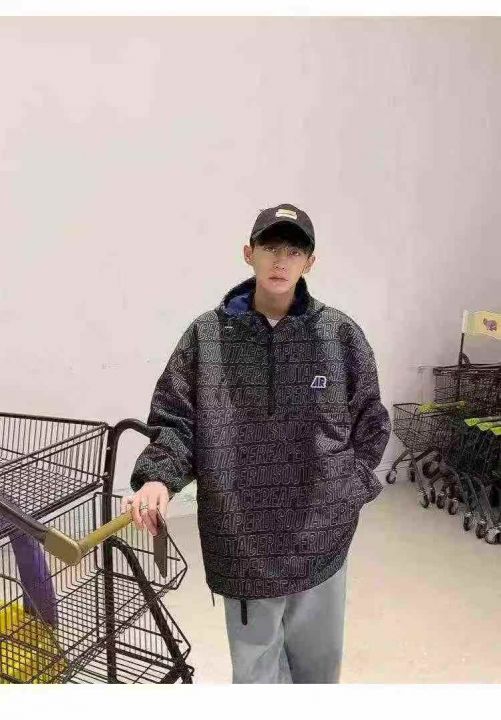 机能风字母半拉链连帽夹克潮牌上衣,[爱心]45件左右,码数M-L,穿50-130斤,万佳档口货,原包装️无瑕疵,[666]实体店品质