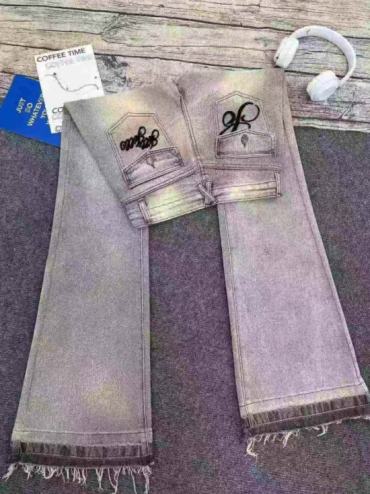 3️⃣美式重工刺绣低腰微喇叭毛边拖地牛仔裤237条,码数M-XL,正品独立包装