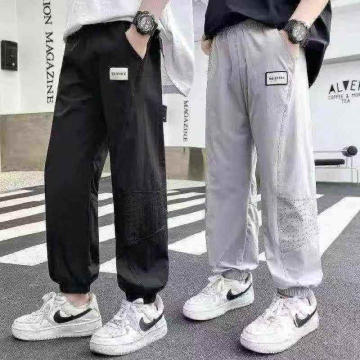 全清价7.8当季热卖中大童冰丝薄款男童透气束脚运动裤...