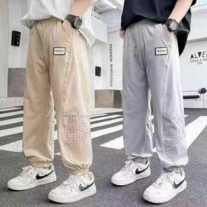 当季热卖中大童冰丝薄款男童透气束脚运动裤,独立包装,整款三色,码数120-170,质量做工,可入实体店,数量753条,分货加1