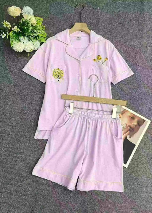 400套纯棉刺绣居家休闲套装。整款两个色,上衣不对称...