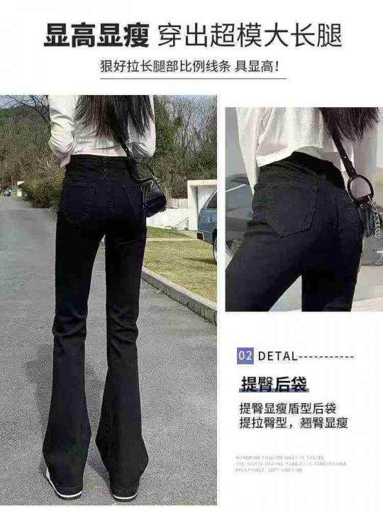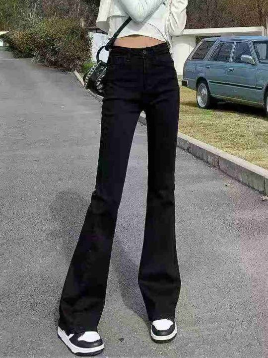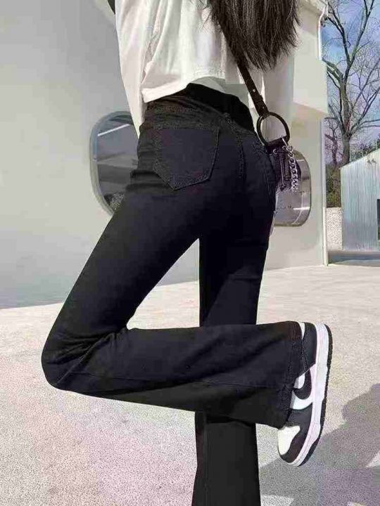 黑色弹力微喇牛仔裤春季新款高腰显瘦喇叭裤修身拖地马...