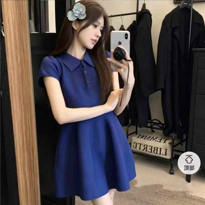 新款衬衫领弹力娃娃裙设计感收腰显瘦蓬蓬a字连衣裙夏季,独立包装,M-3XL码...