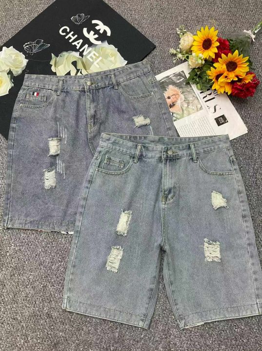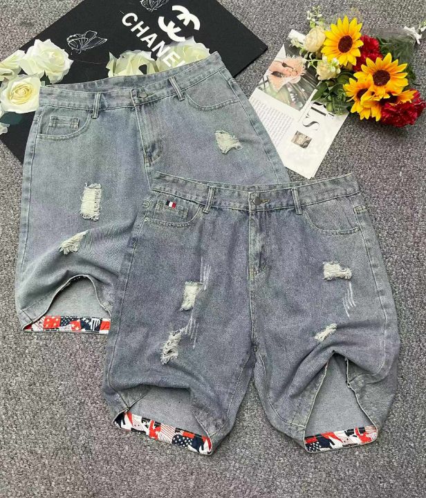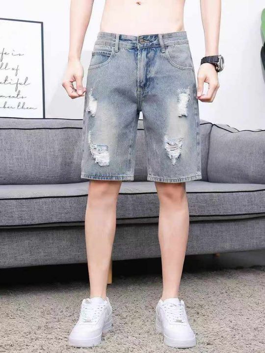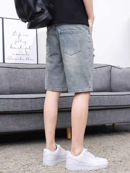夏季新款洗水棉网红复古破洞设计款男士牛仔短裤,图片...