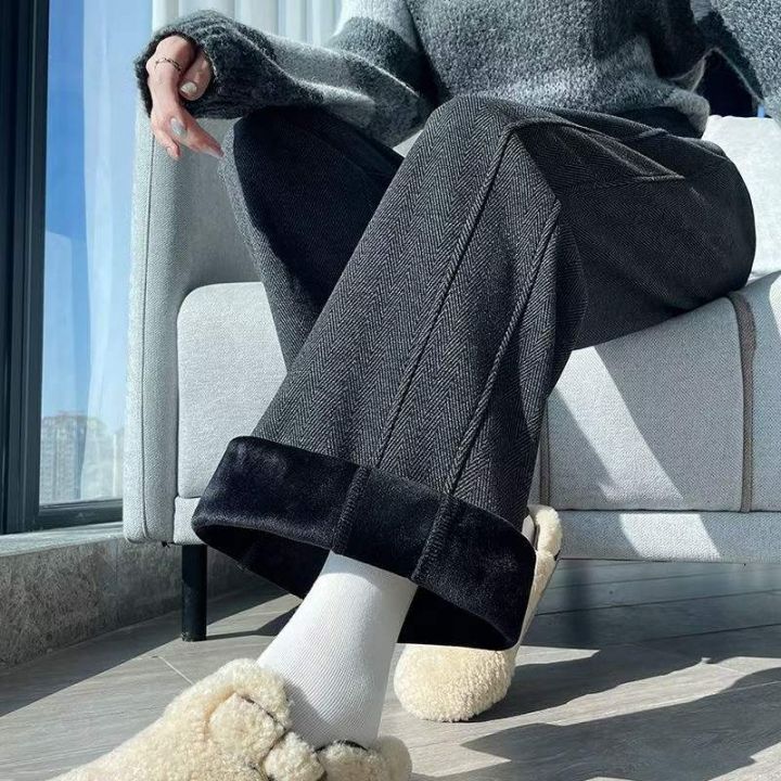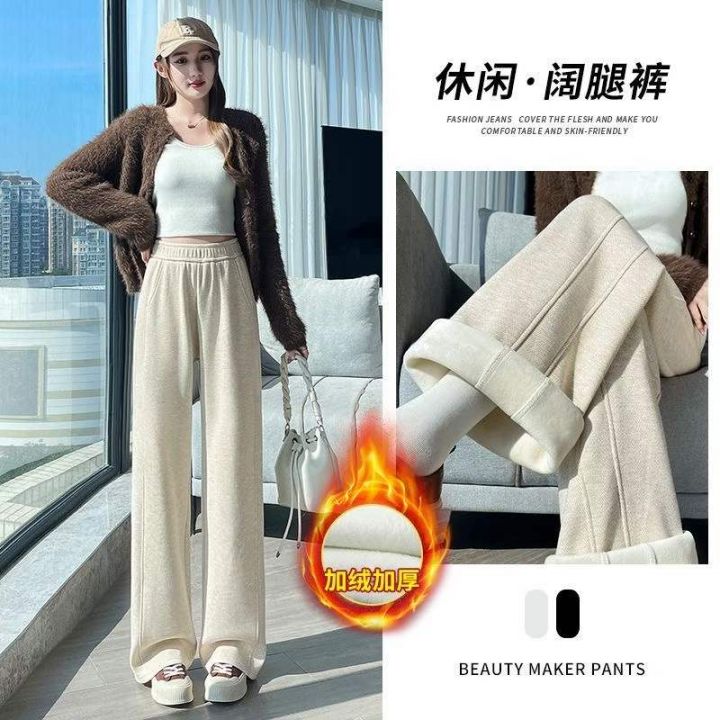 冬季新款高品质女装网红复古直筒阔腿松紧腰加绒加厚休...