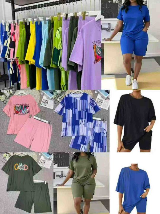 外贸款宽松版休闲短袖T恤套装,总数量:1690套,码数:0XL-1XL-2XL-3XL-4XL,有独立包装,5.9元清