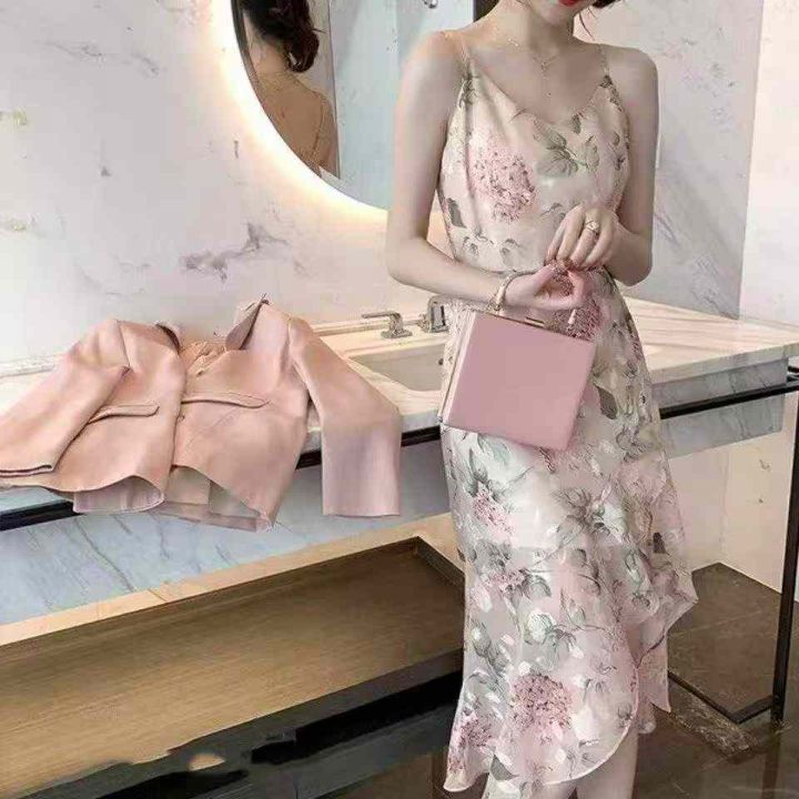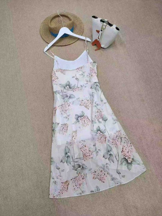 [月亮]:小清新甜美吊带碎花连衣裙