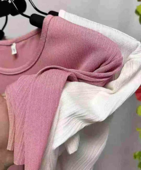 冰丝螺纹短袖,分叉下摆设计,整款两色,独立包装